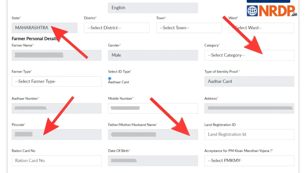 अब आपके सामने “New Farmer Registration Form“ खुल जाएगा. यहां पर आपको अपने गांव या जिला से संबंधित निम्नलिखित जानकारी भरनी होगी :-