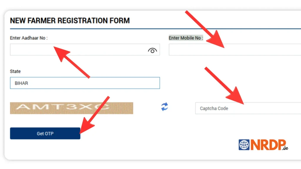 - अब आपके सामने किसान का रजिस्ट्रेशन (Registration) करने का एक पंजीकरण फॉर्म खुलेगा (जैसा की निचे दिखाया गया है)। इस फॉर्म में निम्नलिखित विवरण भरें :-