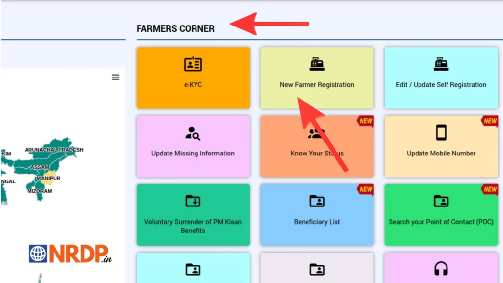 - इसके बाद वेबसाइट के होमपेज पर आपको “Farmers Corner” सेक्शन दिख जाएगा। आपको इस सेक्शन में जाकर ” New Farmer Registration “ विकल्प पर क्लिक करना है।